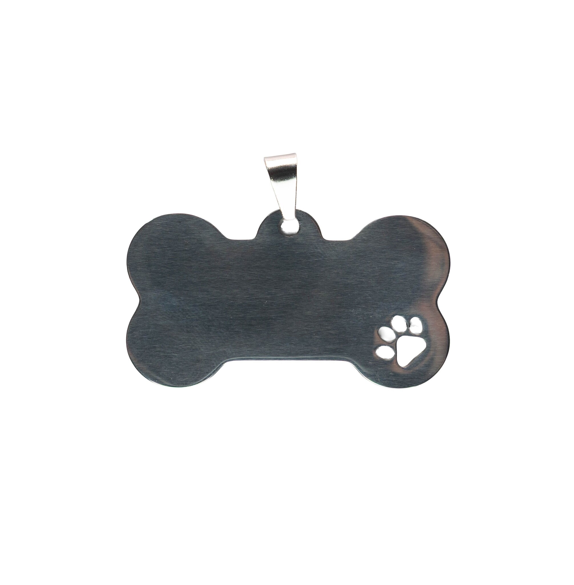 Inhoud pakje: | Metalen plaatje in hondenkluif vorm |