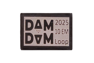 Een rvs-plaatje met daarop het speciale design Dam tot Damloop