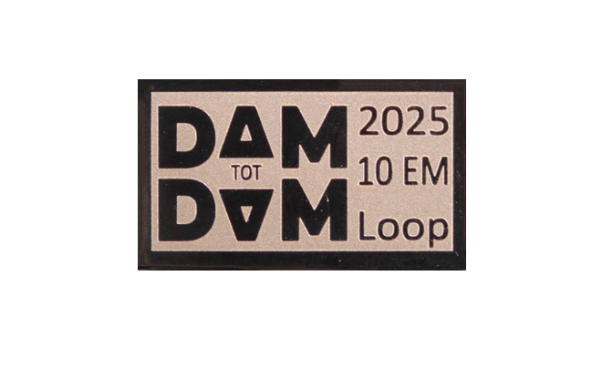 Een rvs-plaatje met daarop het speciale design Dam tot Damloop
